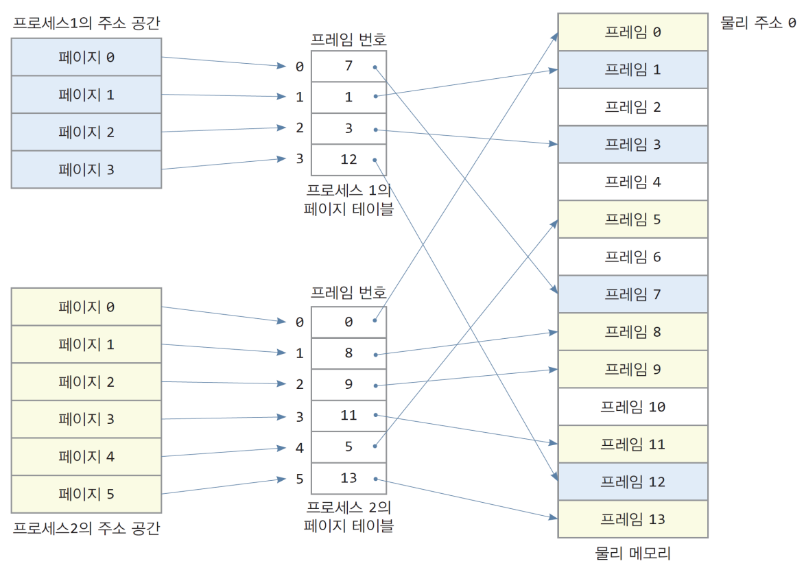 다만 페이징 기법에도 문제가 있는데, 물리 메모리 내에 페이지가 불연속적으로 중구난방 배치되어 있다면, CPU가 하나를 실행하고 다른 페이지를 실행할 때 탐색 시간이 오래 걸릴 수 있다. 이를 해결하기 위해 페이지 테이블을 활용한다.